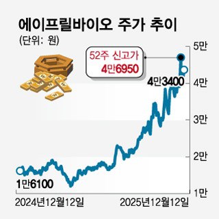 바이오 업종 내 특정 종목의 주가가 약 1년 만에 190% 가량 급등하며 52주 신고가를 경신하는 강세를 보임.