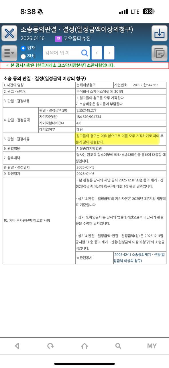 손해배상 소송 청구가 기각되어 약 85.5억원 규모의 지급 의무가 면제되었으며, 이는 2025년 3분기말 자기자본의 4.6%에 해당. 재무적 불확실성이 해소되어 향후 EPS에 긍정적인 영향을 미칠 것으로 예상.