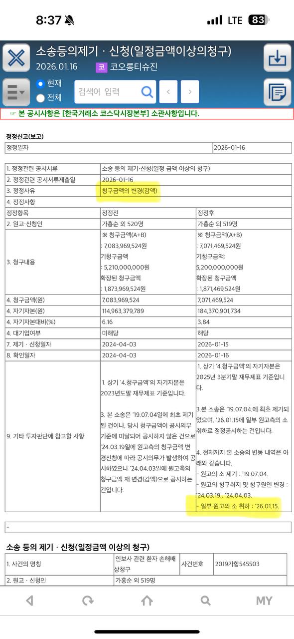 인보사 관련 손해배상 청구액의 소폭 감액 및 일부 원고 소취하로 인한 잠재적 소송 리스크 완화, 더불어 자기자본 대비 청구금액 비율이 개선되어 재무 부담이 감소할 것으로 예상됨.
