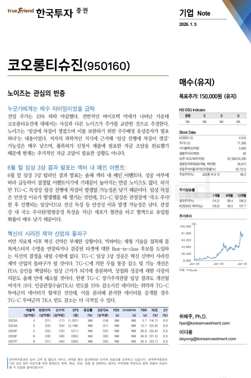 TG-C(인보사) 3상 임상 1차 데이터 수집 완료 (2024년 3월) 및 순조로운 진행 확인 → 신약 개발 성공 기대감 유지 및 중장기적 기업 가치 상승 요인. 다만, 최종 임상 결과 발표 및 상업화까지 불확실성 상존하여 즉각적인 EPS 영향은 미미함.
