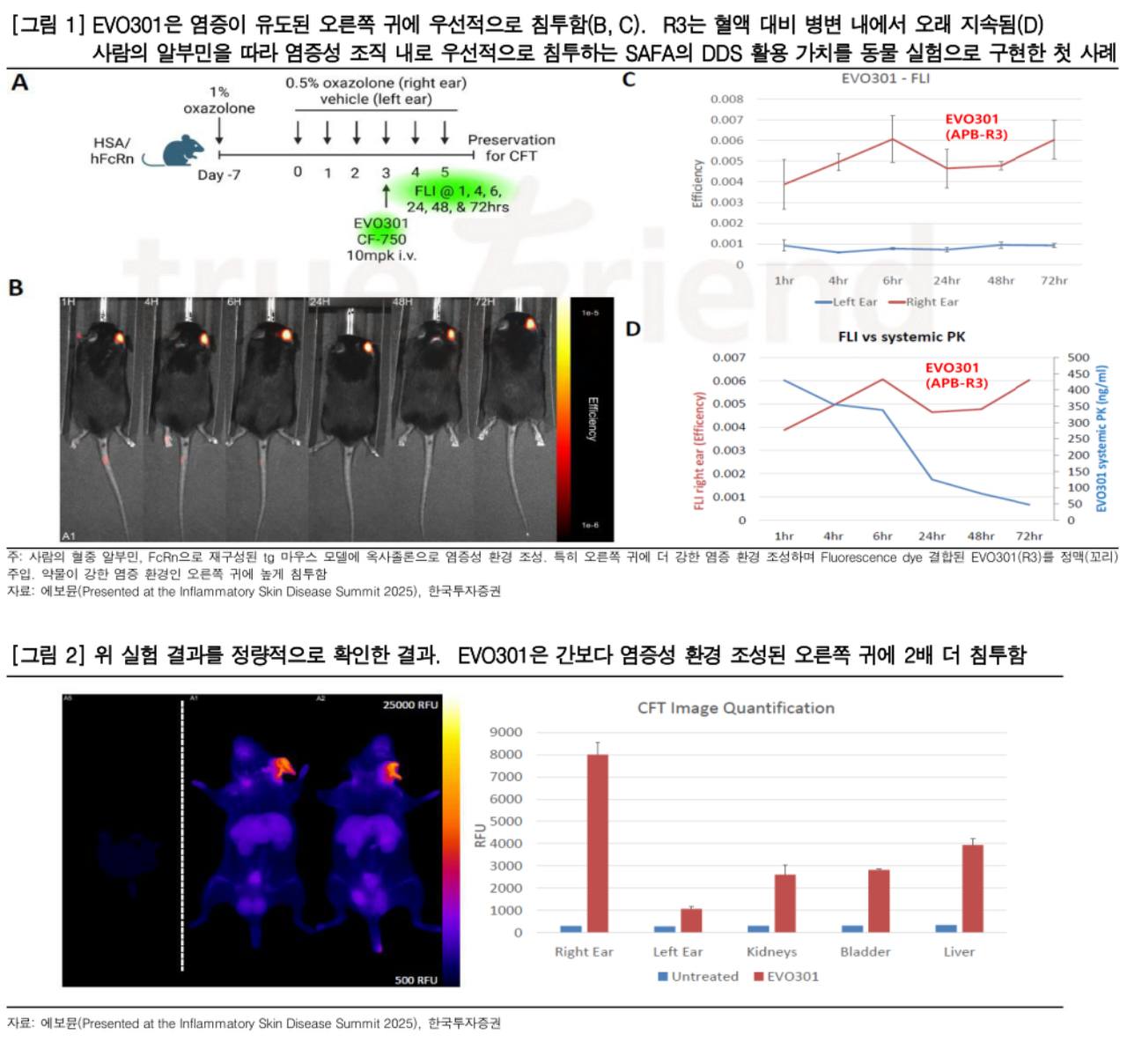 EVO301이 염증성 조직에 효과적으로 침투하며 간보다 2배 높은 침투율을 보임. 이는 약물 전달 시스템(DDS)의 성공 가능성을 높여 에보붐의 파이프라인 가치 및 장기 EPS 추정치 상승 요인.
