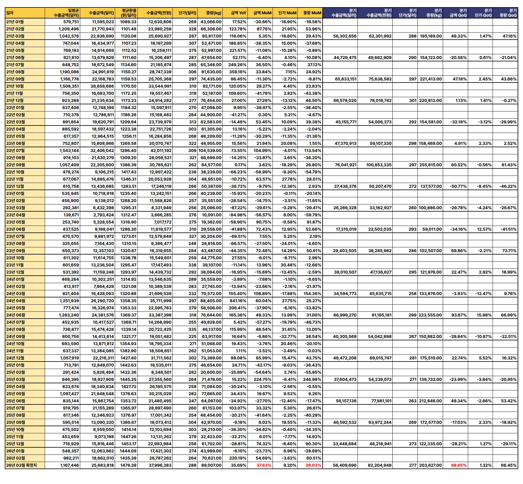 원전 및 산업용 열교환기 수출 단가 및 총액의 지속적인 상승세 (특히 2025년 말-2026년 초 단가 급등)는 일진파워와 같은 관련 기업의 매출 및 수익성 개선에 긍정적으로 작용할 것임.