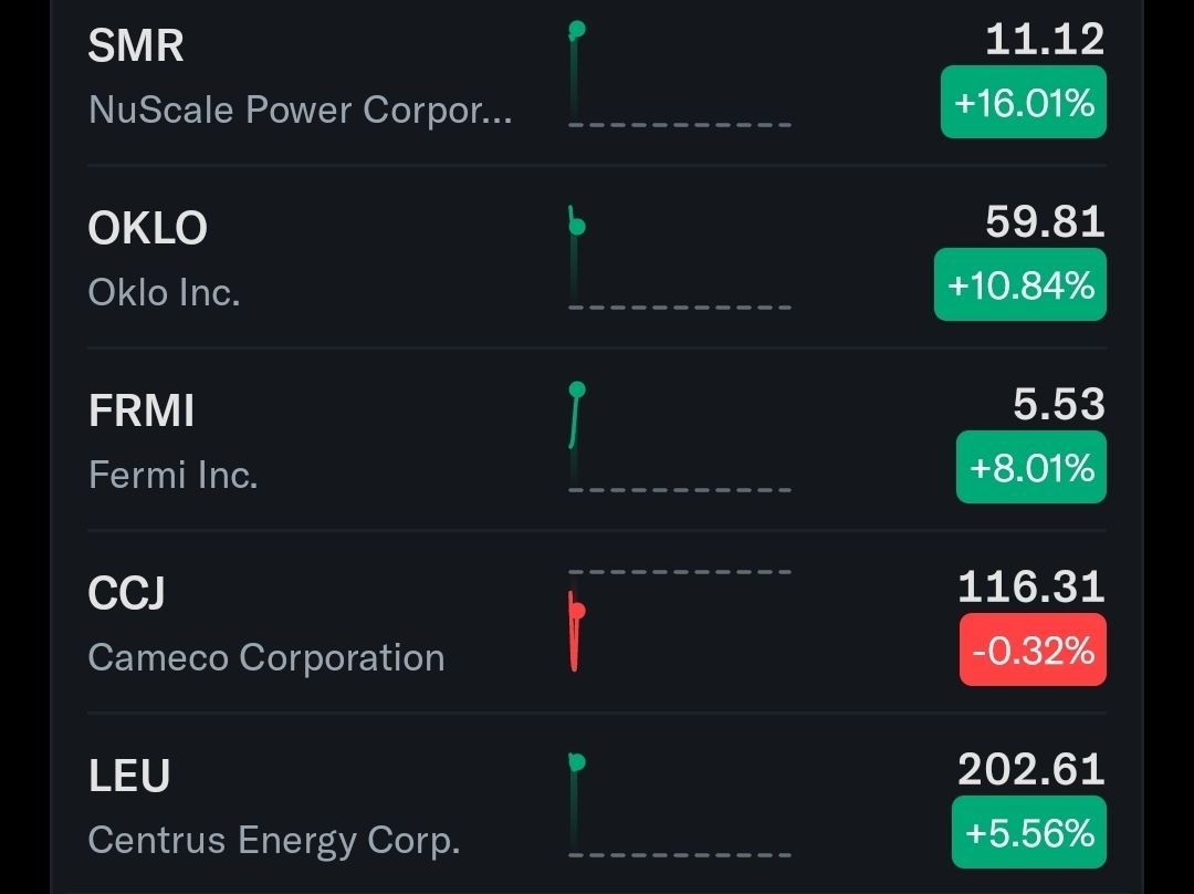 원전 및 핵연료 관련 기업들의 주가가 전반적으로 강세를 보이며 해당 산업에 대한 긍정적인 시장 흐름을 시사합니다.