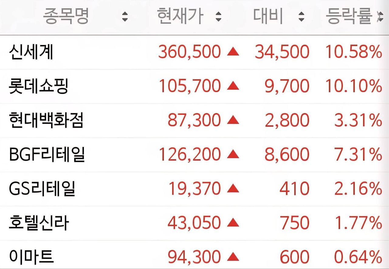 주가 급등은 유통/소매 섹터 전반의 실적 개선 및 소비 심리 회복에 대한 시장의 긍정적 기대감 반영