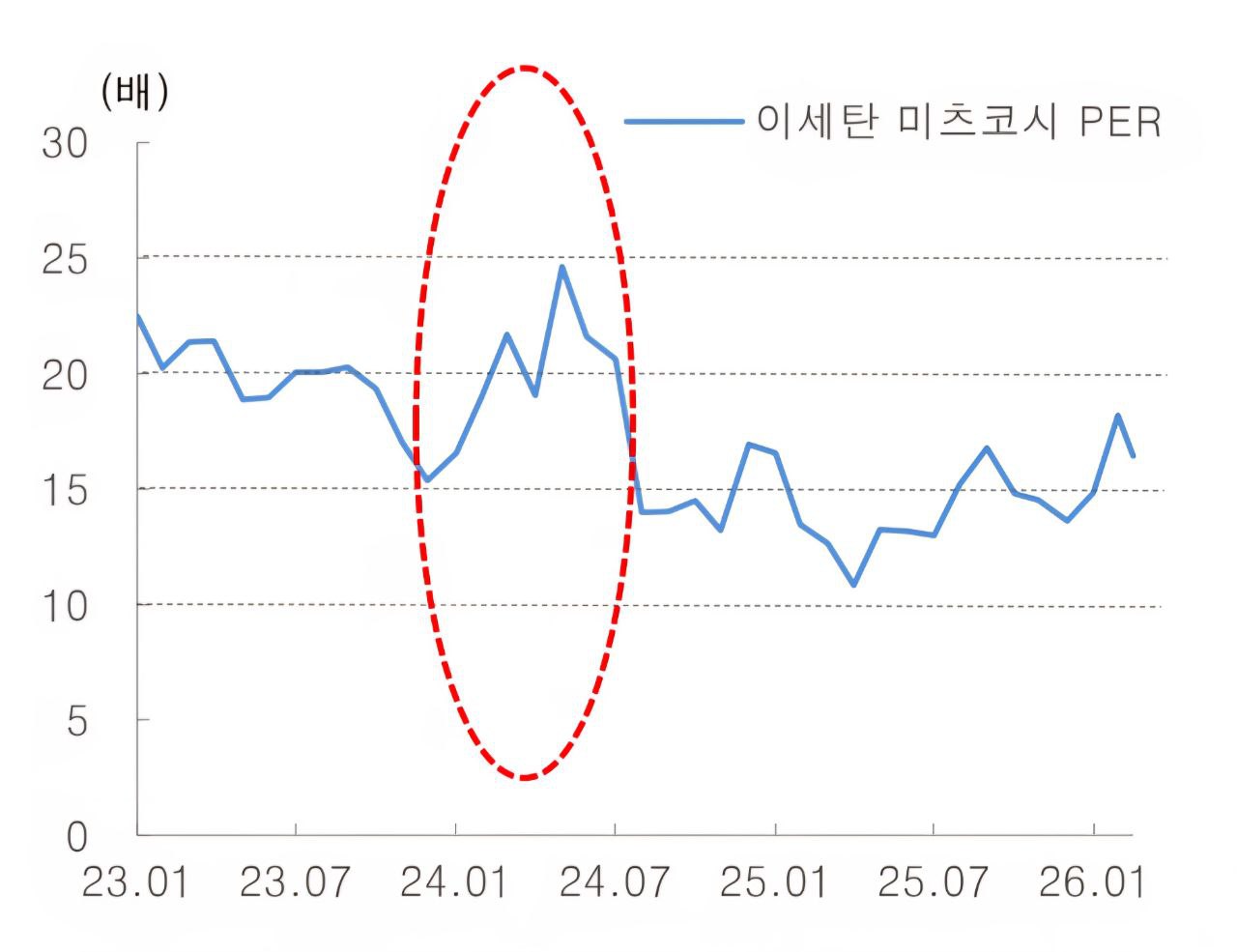 일본 유통업체 PER은 2024년 초 급락 후 2025년 중반까지 낮은 수준을 유지했으나, 최근 반등 추세다.
