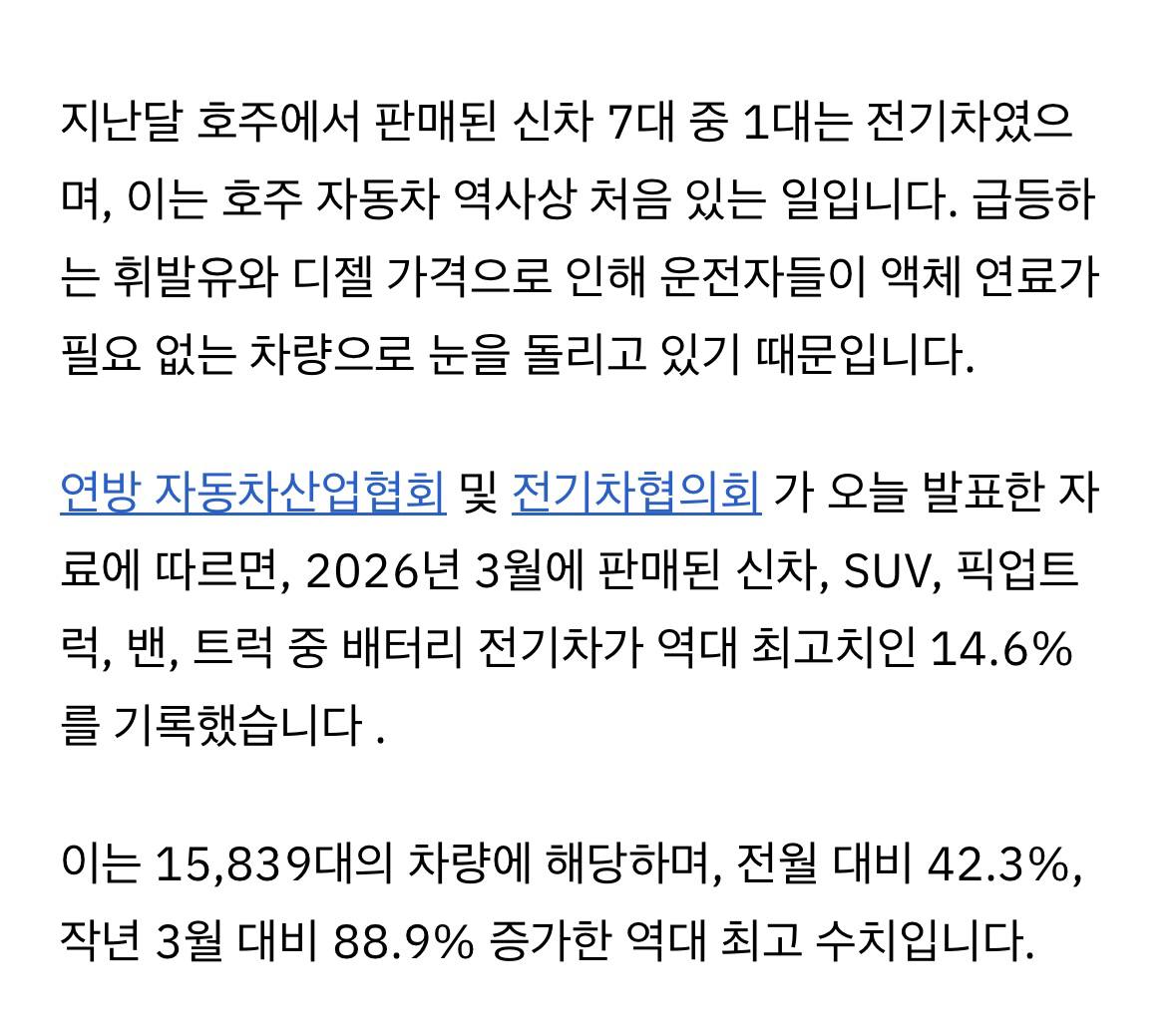 호주 전기차 판매량이 급등하는 휘발유 및 디젤 가격의 영향으로 역대 최고 판매 기록을 경신했습니다.