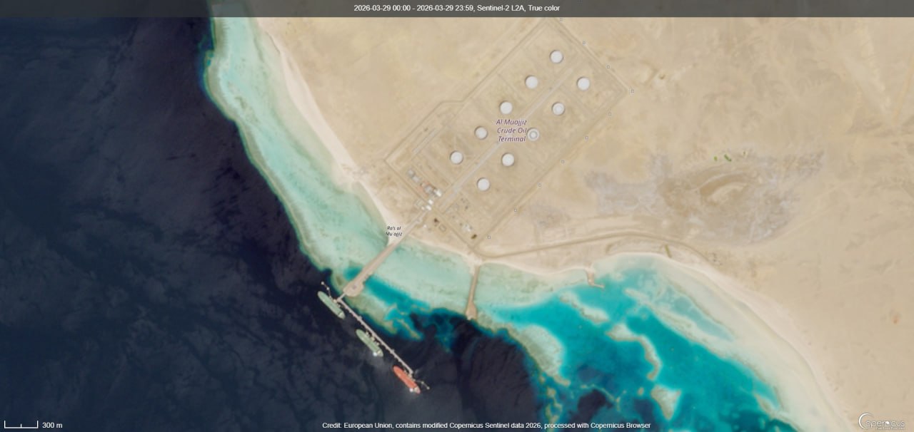 알 무아지즈 원유 터미널에서 여러 유조선이 접안하여 활발한 원유 선적 및 하역 활동이 관찰됩니다.
